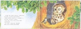 子スズメはお母さんから飛び方を教わりました。羽根をぱたぱたやっているとちゃんと空中にういているので、子スズメはおもしろくなってどんどん遠くまで飛んでいきました。そのうちに羽根が痛くなったので休もうと思いましたが、ようやく見つけた巣にはカラスやヤマバトやフクロウがいて、中に入れてもらえません。やがてあたりは暗くなって……。骨格のしっかりした物語絵本です。