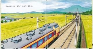 大きな駅から特急列車に乗り、山の麓の駅で急行列車に、そして普通列車に乗りかえて山間の小さな駅に着くまでを、目に映るままに克明に描いた乗物の絵本。